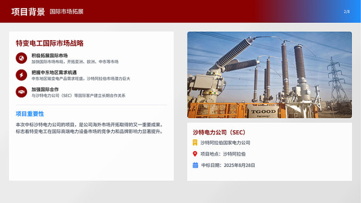 市场突破:首次大规模进入沙特市场,为深度开拓中东及全球高端电力市场树立标杆。